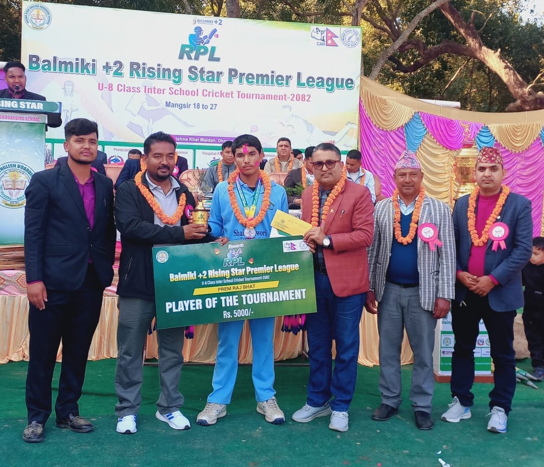 धनगढी । बाल्मिकी प्लस टु राइजिङ स्टार प्रिमियर लिगको उपाधि विद्याभुषण पव्लिक स्कुलले जितेको छ । शनिवार भएको आरपीएलको फाइनल खेलमा स्टेपिङ स्टोन स्कुललाई २६ रनले पराजित गर्दै विद्याभुषणले उपाधि जितेको हो ।