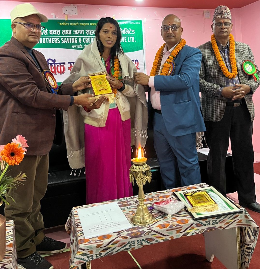 त्यसैगरी उत्कृष्ठ वचत कर्ता तर्फ धनगढी–३ का पुर्णा नन्द पाण्डेय, असल ऋणी तर्फ धनगढी–५ का विश्राम चौधरी तथा उत्कृष्ठ संकलक कर्ता कर्मचारीका रुपमा विमला ओझालाई समेत बार्षिक साधारण सभा कार्यक्रममा सम्मानित गरिएको छ ।