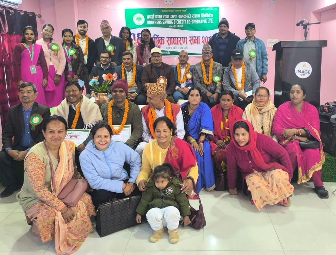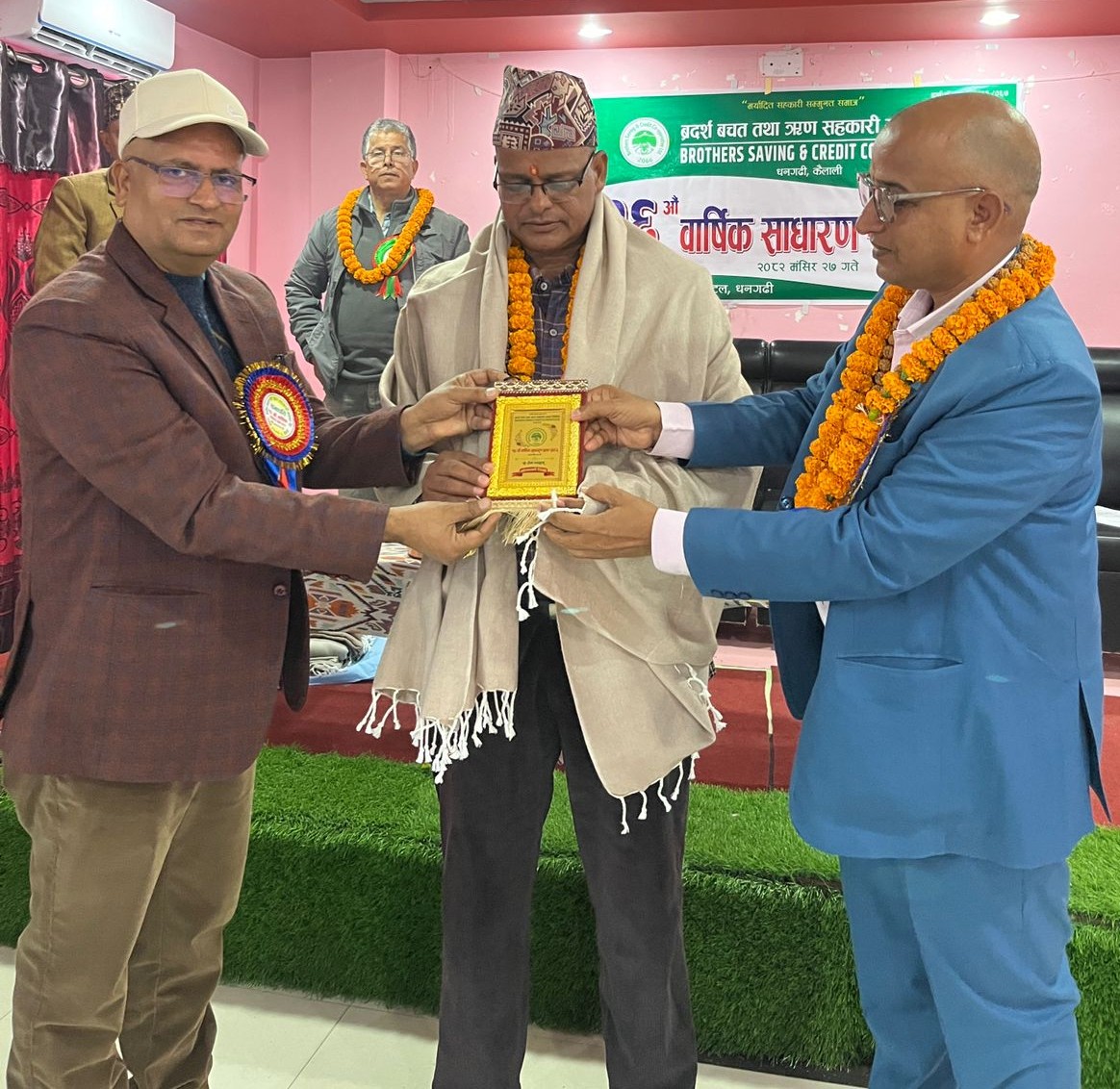 धनगढी । धनगढी स्थित ब्रदर्श वचत तथा ऋण सहकारी संस्था लिमिटेडको १६औं बार्षिक साधारण सभा सम्पन्न भएको छ । संस्थाका अध्यक्ष धनन्जय भट्टको अध्यक्षतामा सम्पन्न बार्षिक साधारण सभा कार्यक्रममा पुर्व अध्यक्ष तथा पुस्तक व्यवसायी मेखराज दाहाल प्रमुख अतिथि रहनु भएको थियो । कार्यक्रममा पुर्व अध्यक्ष योगेन्द्र अवस्थी लगायत अतिथि रहनु भएको थियो ।