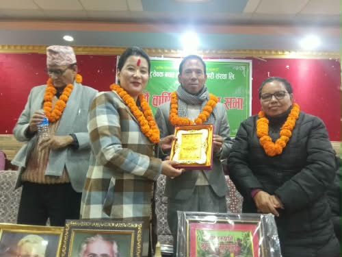साधारण सभामा सहकारीका जेष्ठ सदस्यहरु आनन्द सिंह बिष्ट र सौशाग्य शाहीलाई सम्मानित गरिएको छ ।