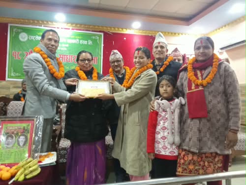 साधारणमा नियमित बचतकर्ता मध्य लक्ष्मी प्रसाद भण्डारी र पुष्पा कमारी नाथ, असल ऋणीमध्य इश्वरीदत्त उपाध्याय र आरती कार्की, सहकारीको श्रीबृद्धिमा योगदान पुरयाएकोमा हरी प्रसाद केसी र लोकराज पनेरुलाई सम्मानित गरिएको छ ।
