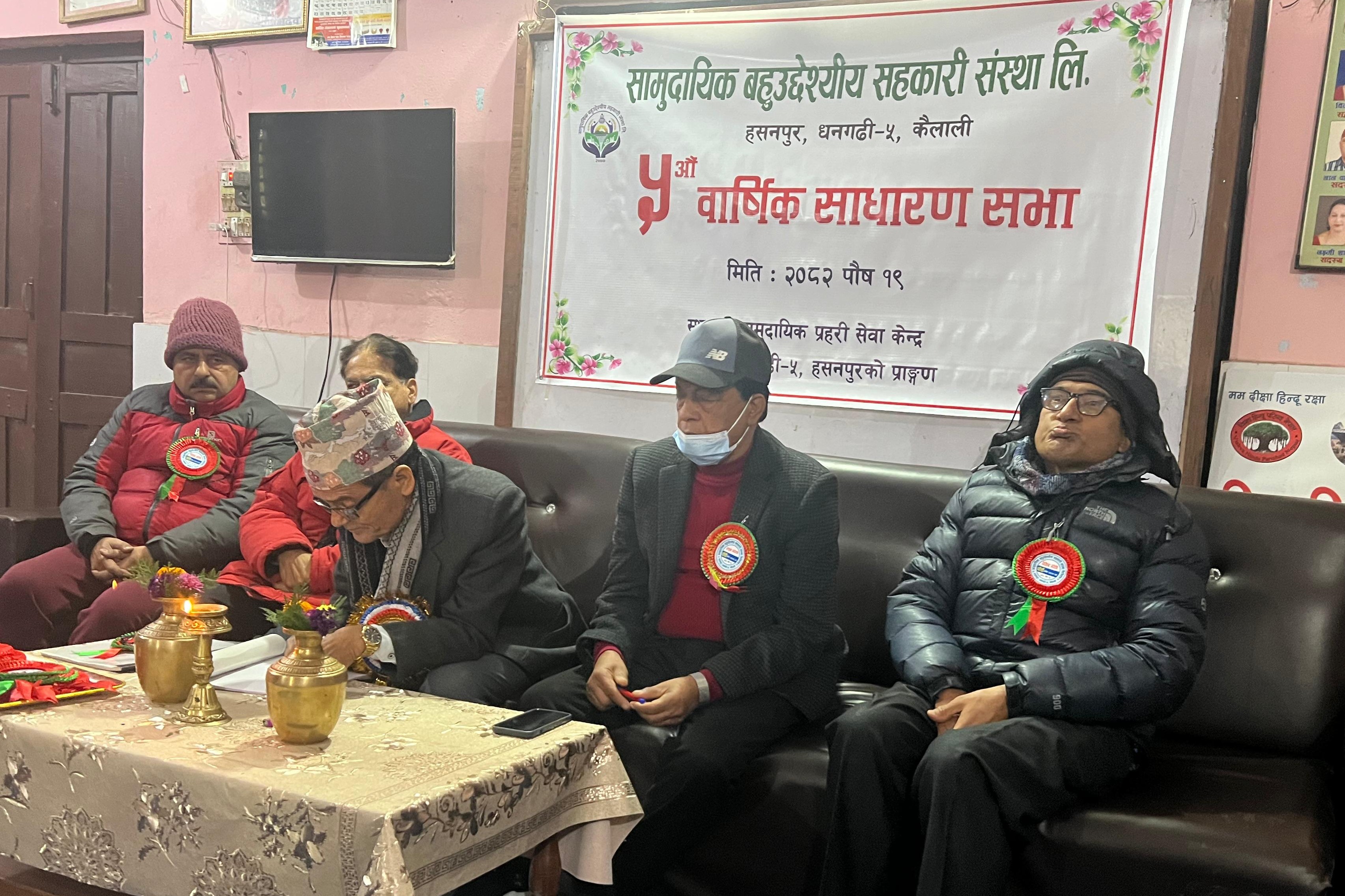 धनगढी । सामुदायिक बहुउदेश्यीय सहकारी संस्था लिमिटेडको पाँचौ वार्षिक साधारण सभा शनिबार धनगढीमा सम्पन्न भएको छ ।
